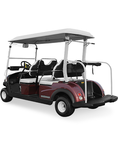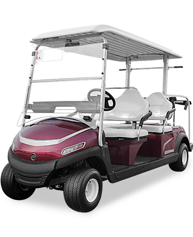 同向四座高爾夫球車,可以供4名球手和2名球童同時駕乘,也可以供3名球手和3名球童同時駕乘。